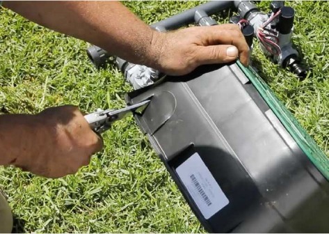 Use scissors or pruners to cut out the sides of your valve box and let the pipes run through.