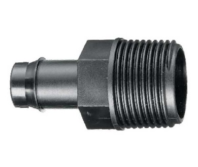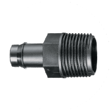 Connects a threaded fitting to a barbed fitting