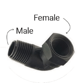 Male and female refer to the ends of the fitting. The male thread is visible on the outside of the fitting vs the female located inside the fittings. Keep in mind the fitting type and size when connecting the water device.